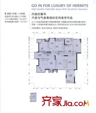 融科海阔天空户型图B、D栋1、2号房 4室2厅2卫1厨