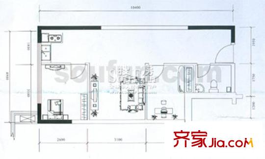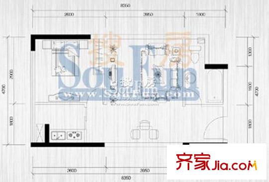 铂蓝地户型图C户型 1室1厅1卫1厨