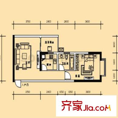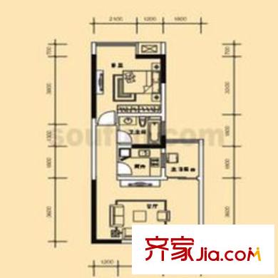 北城旺角户型图7、14户型 1室2厅1卫1厨