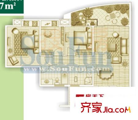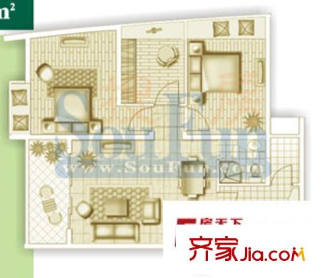 华彩俊豪户型图3X2I 2室1厅1卫1厨