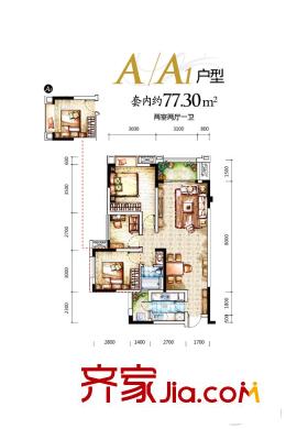 融汇温泉城童话里一期D区4号楼A/A1户型 2室2厅1卫1厨