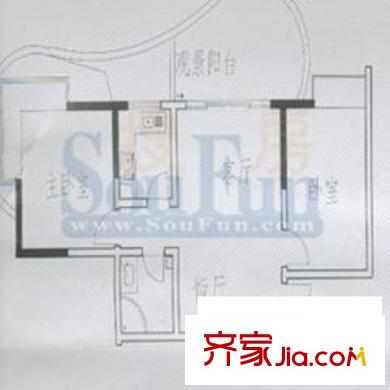嘉韵山水城户型图B型 2室2厅1卫1厨