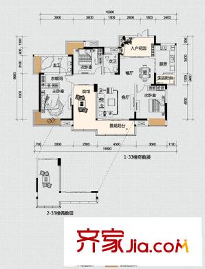 协信天骄城户型图10/11栋 C2 3室2厅2卫1厨