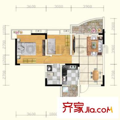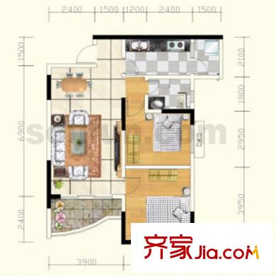 青河世家户型图9号楼2号房 2室2厅1卫1厨