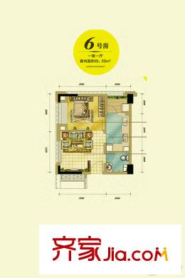 中航翡翠城二期高层26号楼标准层6号房户型图 1室1厅1卫1厨