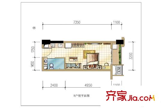 中航翡翠城一期高层27号楼标准层B户型 1室1厅1卫1厨
