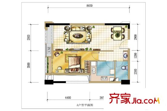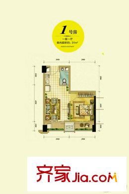 中航翡翠城二期高层26号楼标准层1号房户型图 1室1厅1卫1厨