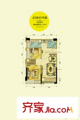中航翡翠城二期高层26号楼标准层3、10、11号房户型图 2室2厅1卫1厨