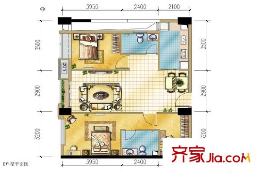 中航翡翠城一期高层27号楼标准层E户型 2室2厅1卫1厨