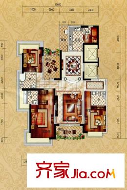 锦绣山河四期A1户型 68#1单元01,2单元02 (194平方米) 4室2厅3卫1厨