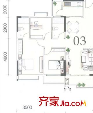 君御水漾年华户型图02座03单位 3-16层 3室2厅1卫