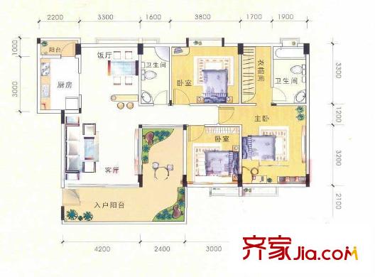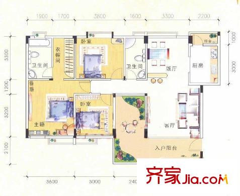 德建华庭户型图4室2厅 户型图 4室2厅1卫1厨