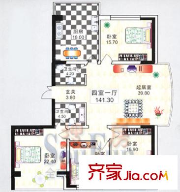 金安桃源城市户型图4室1厅2卫