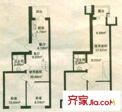 北岸启程户型图六带七阁楼户型 4室2厅2卫1厨