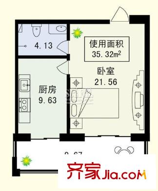 香江月精品名座户型图一室一厨35.32平方米 1室1卫1厨
