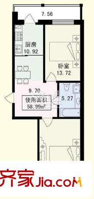 香江月精品名座户型图两室一厅58.99平方米 2室2厅1卫1厨