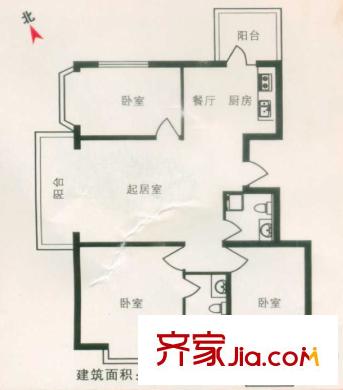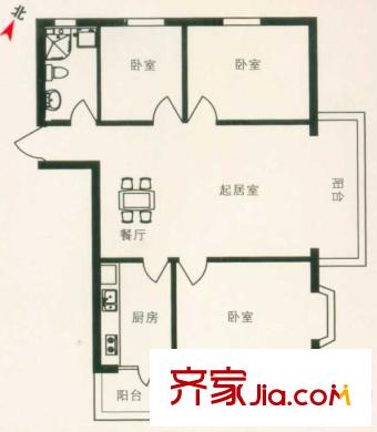富丽国际户型图E户型 3室2厅1卫1厨