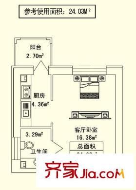 金泰蓝郡户型图三期:一屋一厨一卫24.03平方米 1室1厅1卫1厨