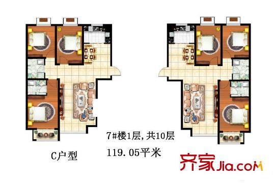 海鹏春天永祥苑C户型 119平方米三居 3室2厅2卫1厨