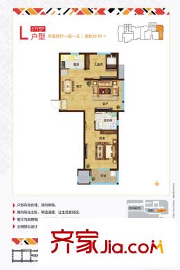安联・风度柏林两室两厅一厨一卫90平方米1#5#L户型图 2室2厅1卫1厨