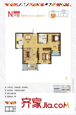 安联・风度柏林两室两厅一厨一卫90平方米1#5#N户型图 2室2厅1卫1厨