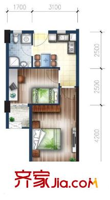 邮电学院宿舍 2室 户型图