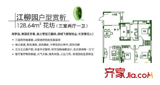 九溪江南户型图江柳园花坊 3室2厅1卫1厨