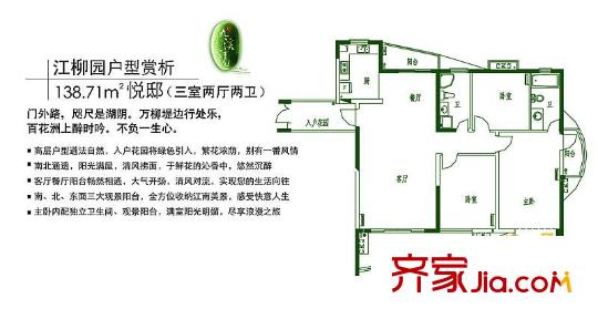 九溪江南户型图江柳园悦邸 3室2厅2卫1厨