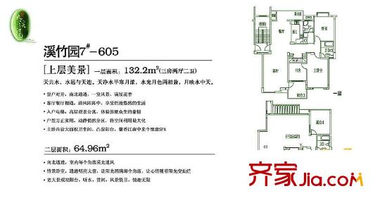 九溪江南户型图溪竹园7#上层美景 3室2厅2卫1厨