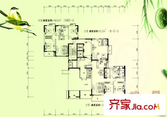 九溪江南户型图江柳园香榭 3室2厅2卫1厨
