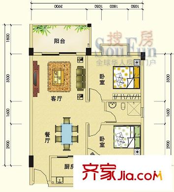 瑜进嘉园户型图精致两房 2室2厅1卫1厨