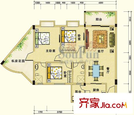 瑜进嘉园户型图惬意三房 3室2厅2卫1厨
