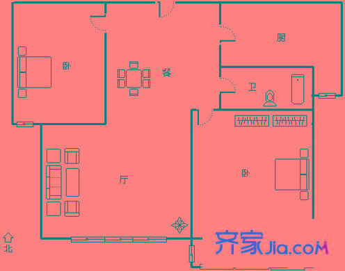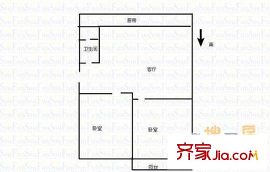 历下区检察院宿舍户型图 户型图 2室2厅1卫1厨