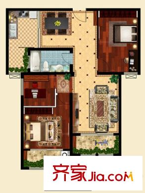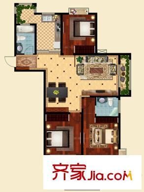 英伦华府三号楼A户型 3室2厅2卫1厨
