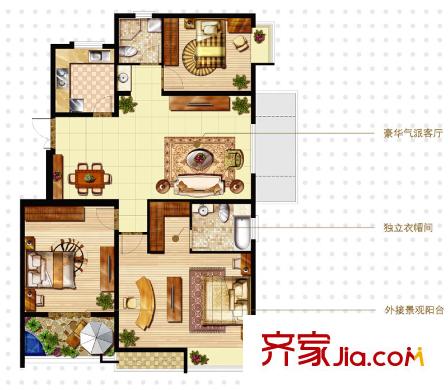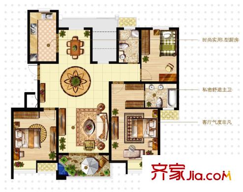 国信龙湖世家户型图3#、7#楼东端户型 3室2厅2卫1厨