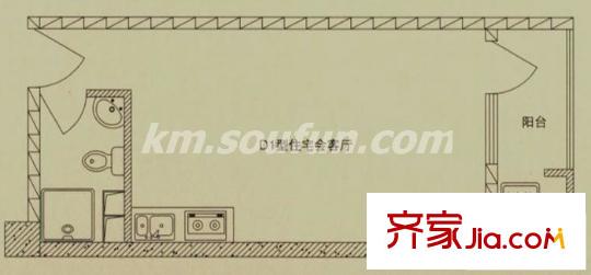 铂金国际公寓户型图D户型 1室1厅1卫1厨