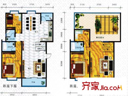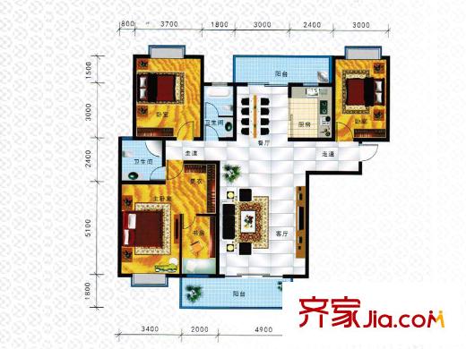 滇池润园户型图A3户型 6室3厅4卫1厨