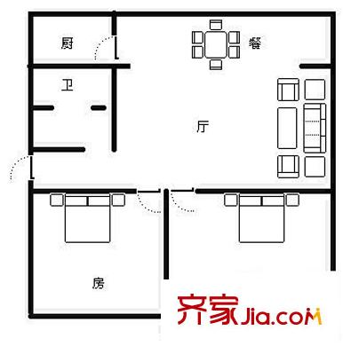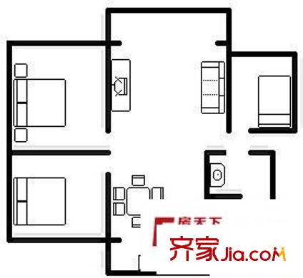 白马城建组团 2室 户型图