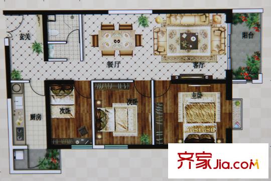 万宏国际D2户型 3室2厅1卫1厨
