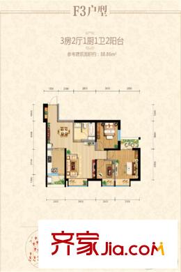 领秀・星辰园F2户型 3室2厅1卫1厨