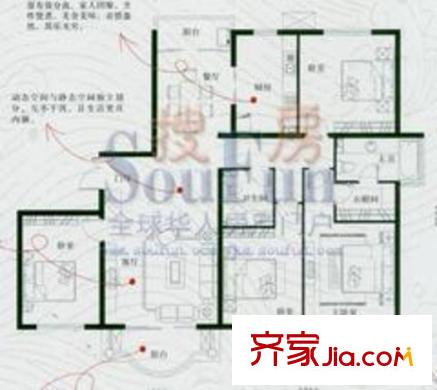 世纪城户型图惜春苑10#A、H座 4室2厅2卫1厨