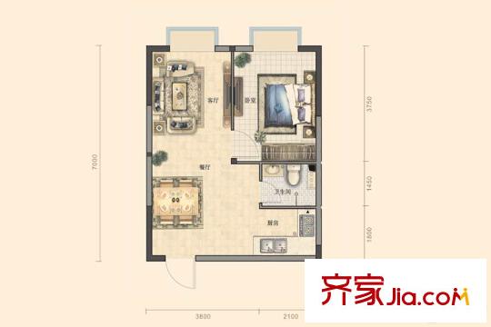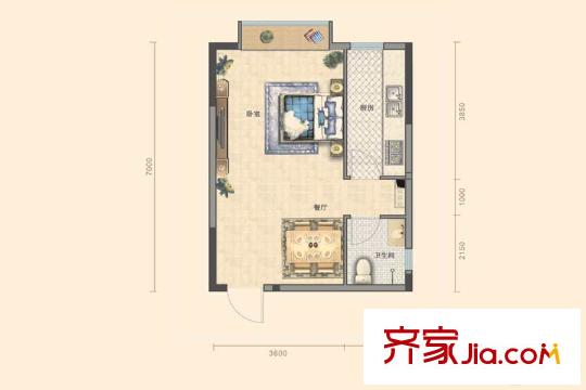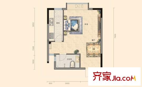 景园・悦海湾3栋A2户型48.48平方平米 1室1厅1卫1厨
