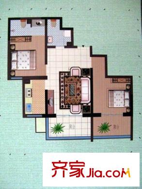 爱丽富嘉园户型图B4户型 2室1厅1卫1厨