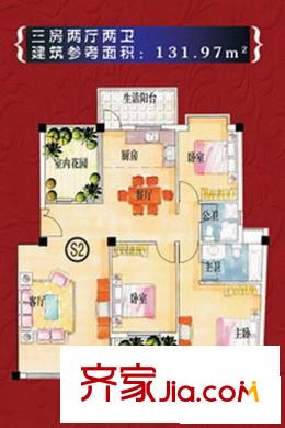佳信・红林新都阳光海岸户型图户型 3室2厅2卫1厨