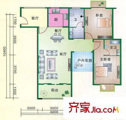 幸福两岸A4、B4户型 2室1厅2卫1厨