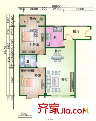 幸福两岸A1、B1户型 2室1厅1卫1厨