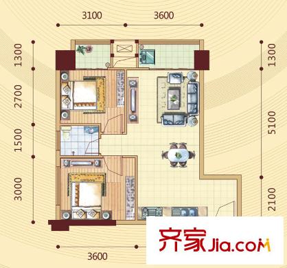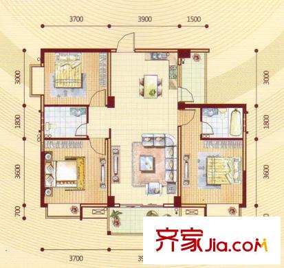 昌泰东盟园1#、2#、3#楼C-1户型 3室2厅2卫1厨