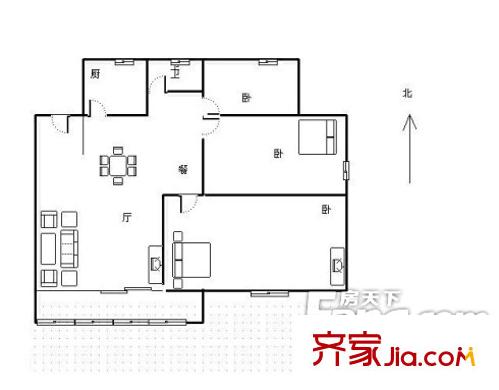 长乐新村二期户型图三室一厅 3室1厅1卫1厨