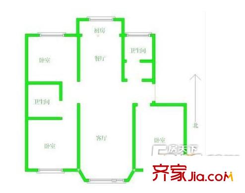 在水一方户型图3 3室1厅1卫1厨