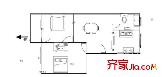 在水一方户型图户型图 2室1厅1卫1厨